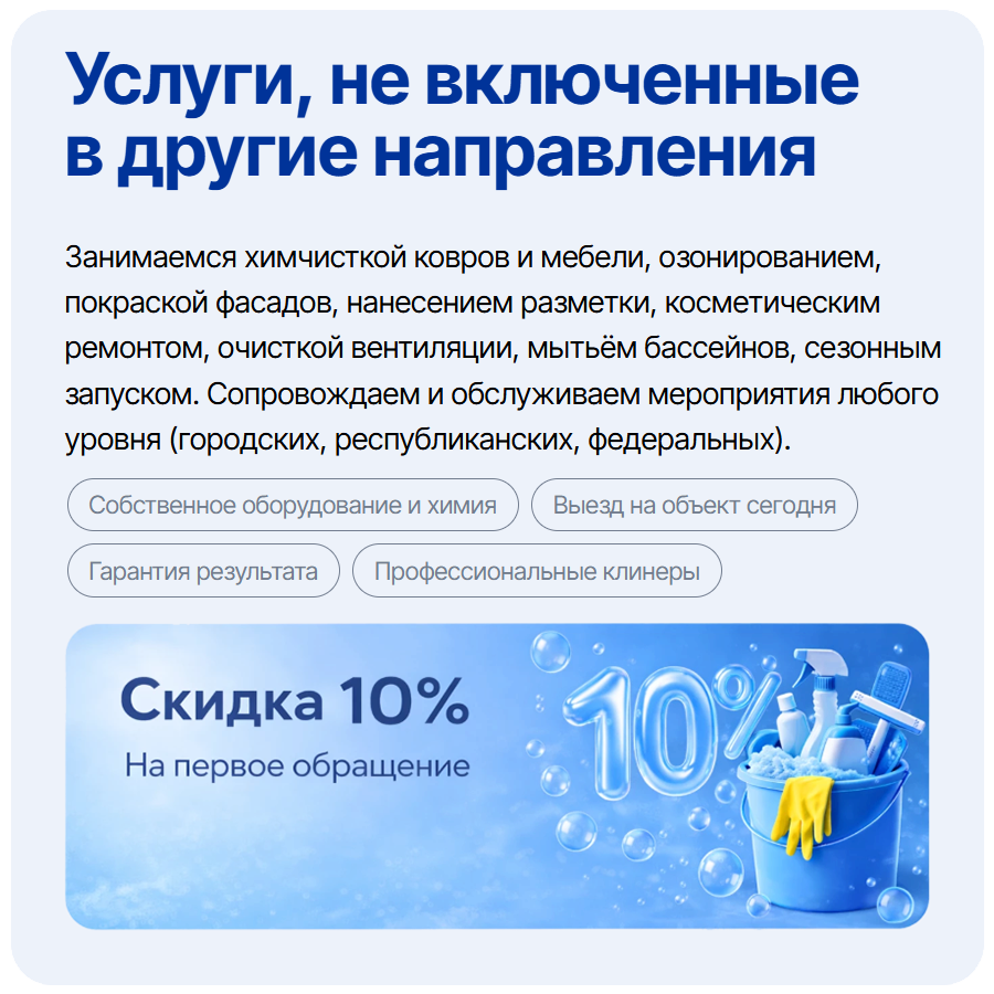 Полный спектр дополнительных клининговых и сервисных услуг для